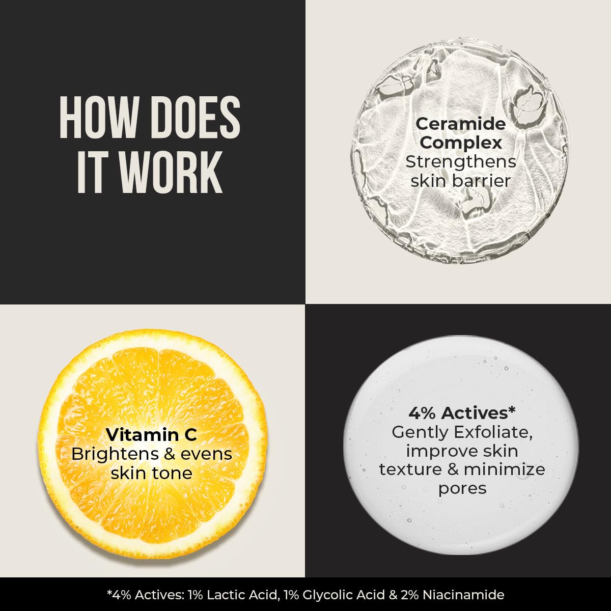- 4% ACTIVES FOR BRIGHT, HEALTHY & GLOWING SKIN - Powered by the blend of 4% Actives: 1% Lactic Acid, 1% Glycolic Acid & 2% Niacinamide, this body wash brightens the skin, revives your skin’s natural glow while strengthening it from within.