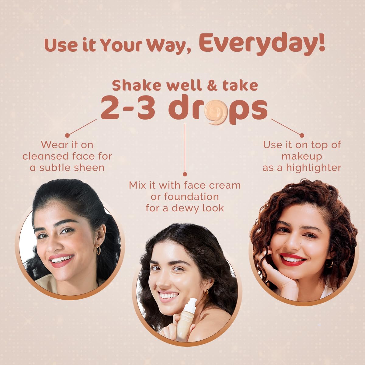 Glow from within with this 3-in-1 must-have! It’s a primer, moisturizer, and illuminator all in one, giving you that dewy, radiant look every day. 🧡 The non-greasy, non-drying formula is super comfortable to wear, giving you the perfect glow without the shine or patchiness. Plus, it comes in a universal shade that flatters all Indian skin tones. 😍