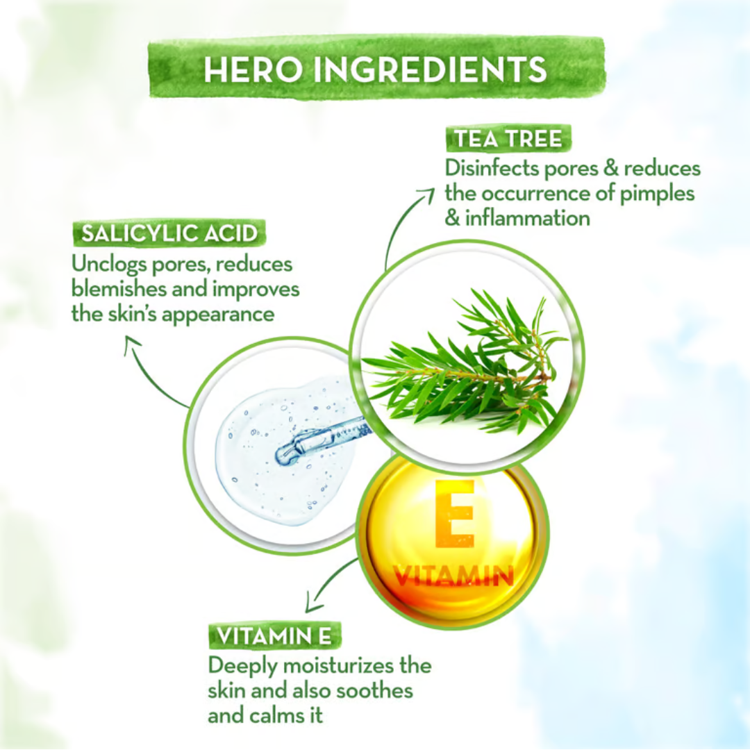 - Fights breakouts with Salicylic Acid + Tea Tree